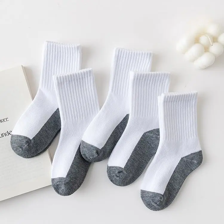 V&J 100% Cotton Kids Black White Grey Boys Girls School Sport Socks